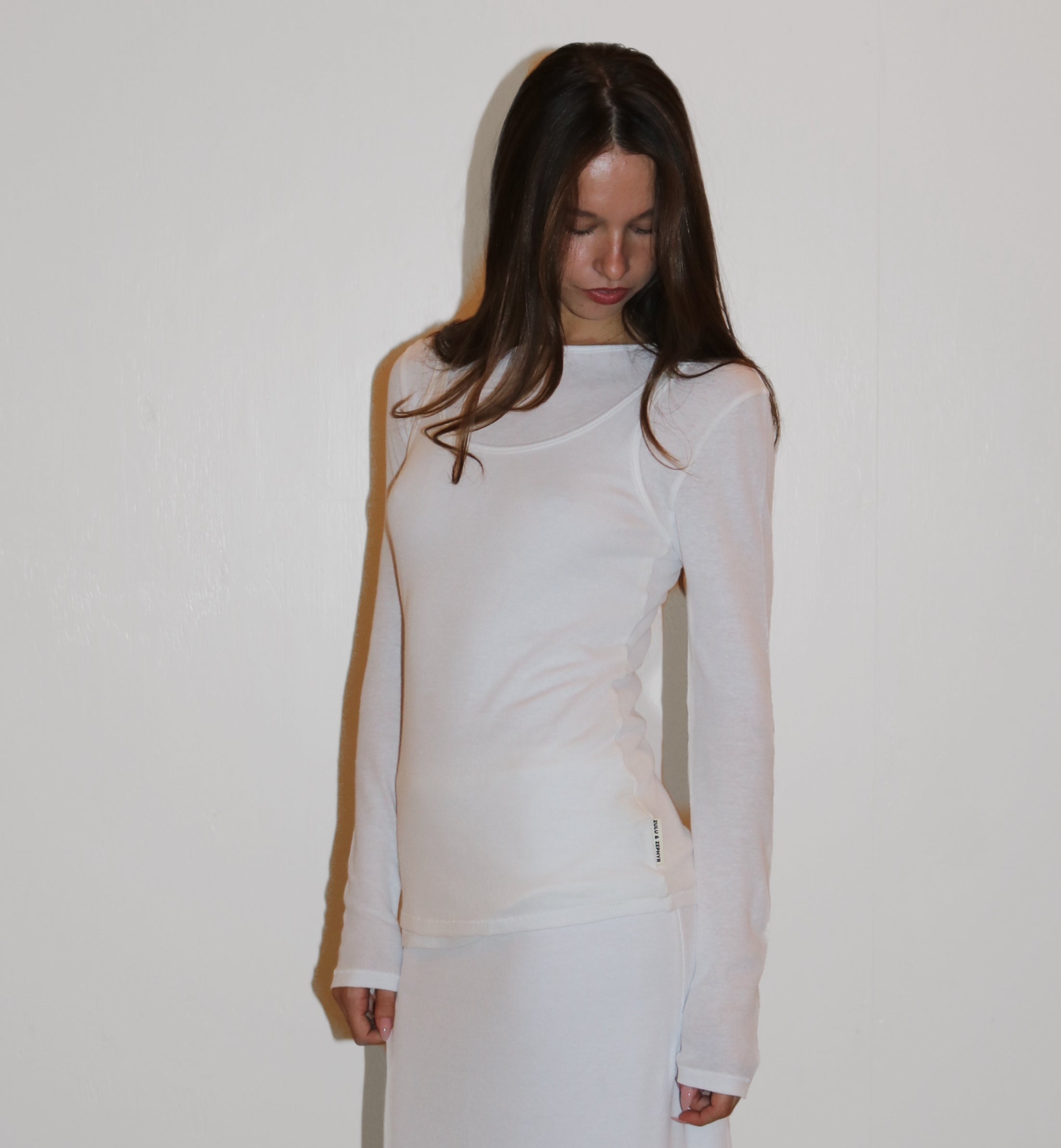 Zulu & Zephyr Rib Jersey Long Sleeve Top White