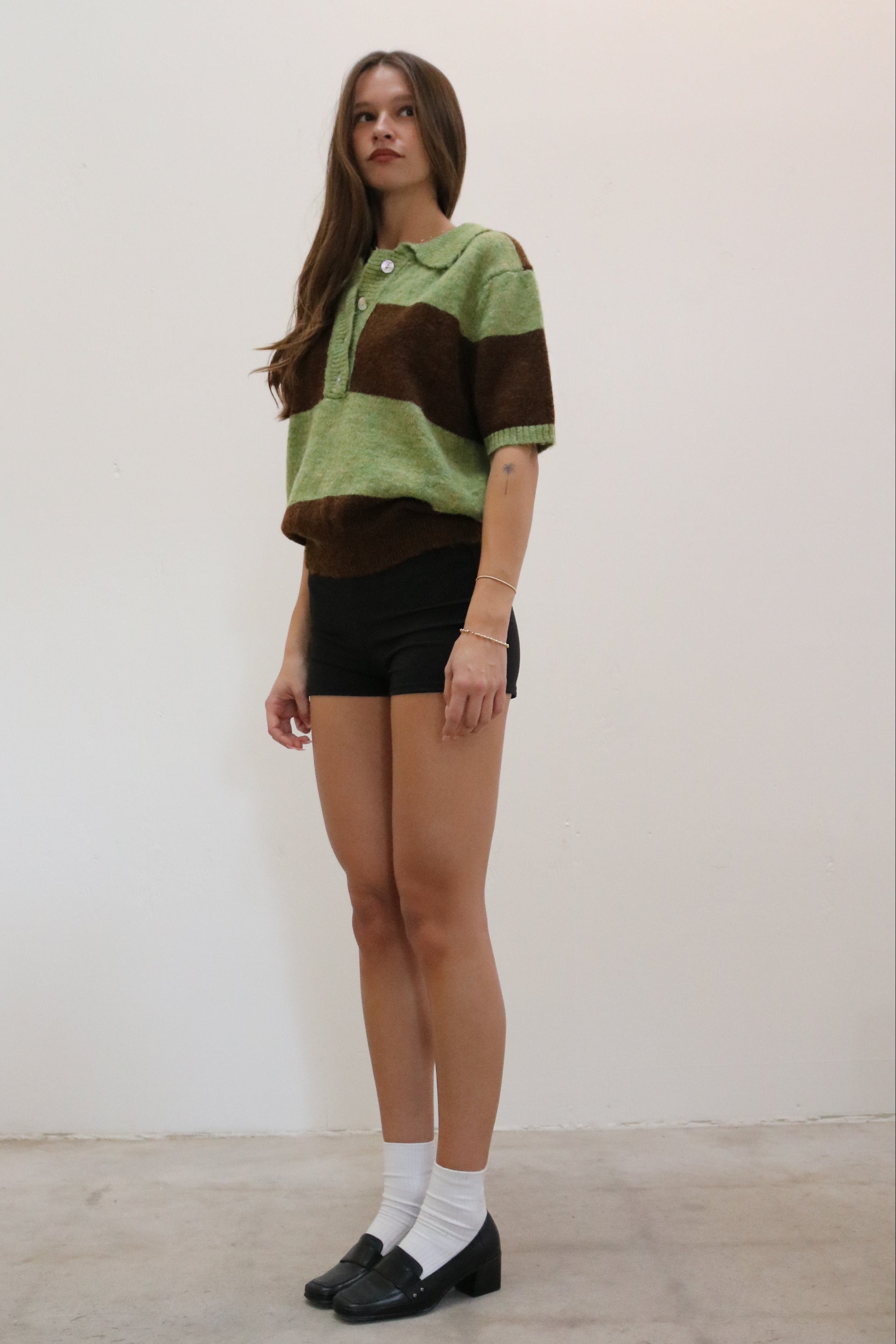Lisa Says Gah Molly Polo Sweater Mocha Pistachio Stripe