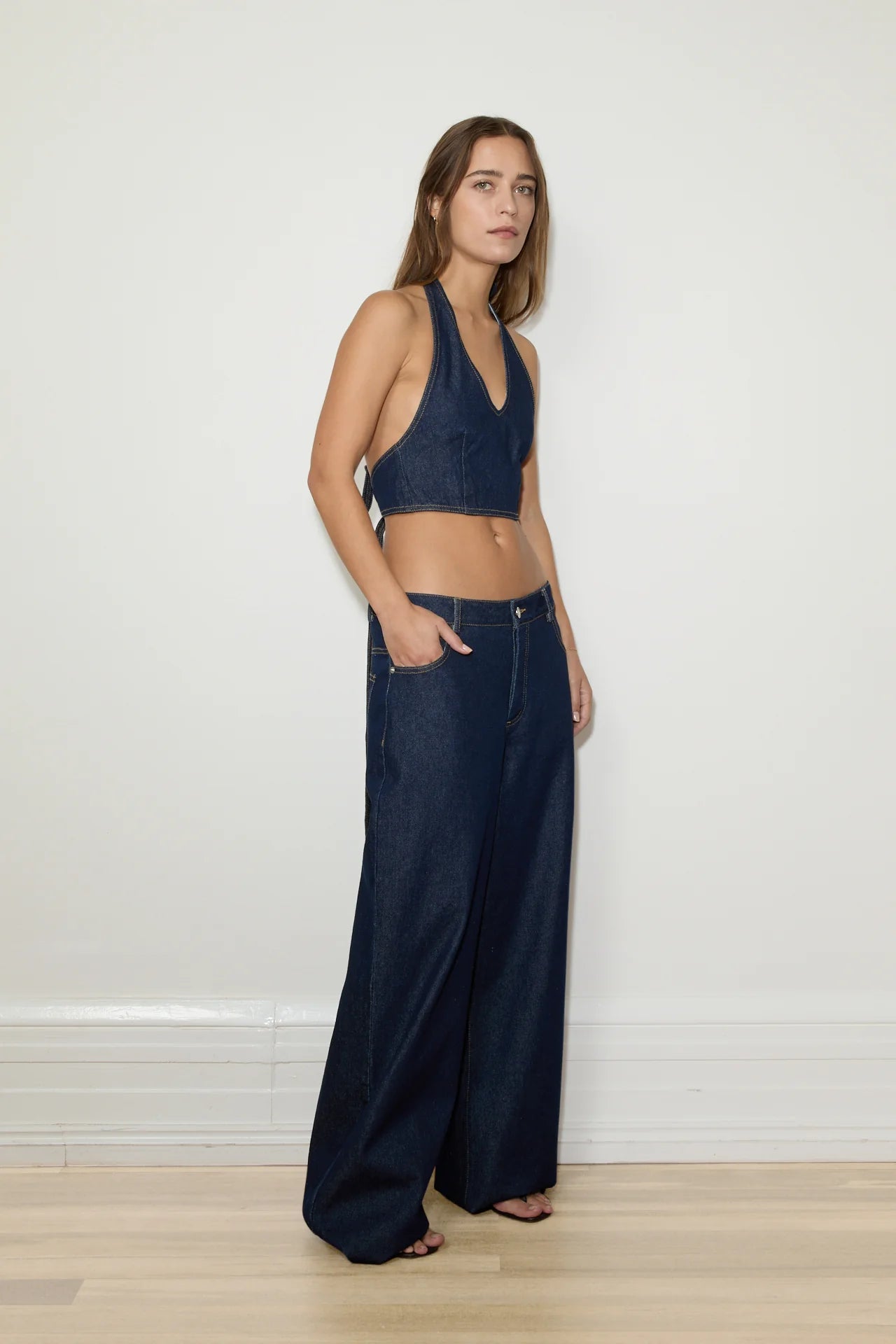 Maison Essentiele Denim Halter Top